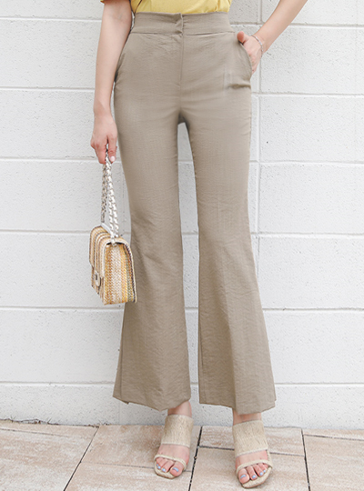 后侧松紧带 亚麻 开衩 喇叭 宽松长裤