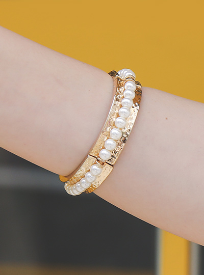 花边 珍珠黄金曲线镯子