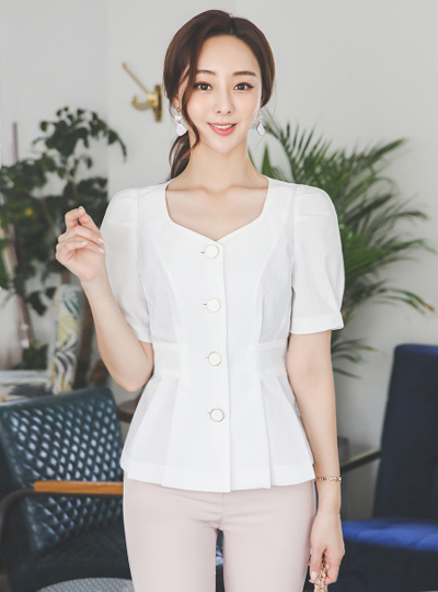 泡泡袖 백핀턱 喇叭 金色纽扣 夹克