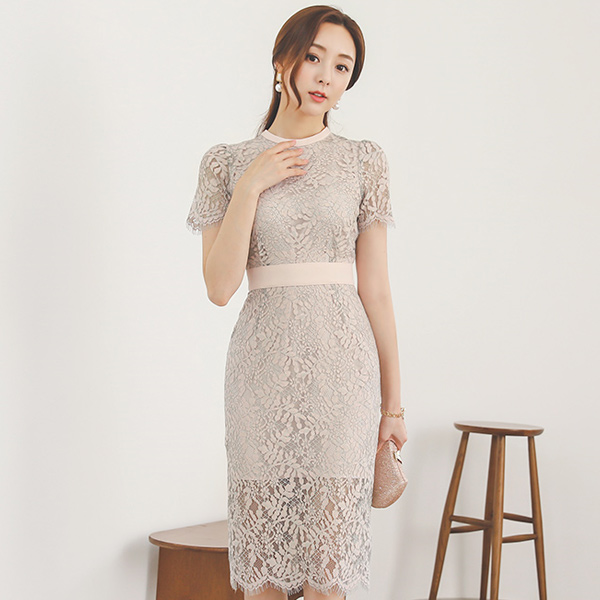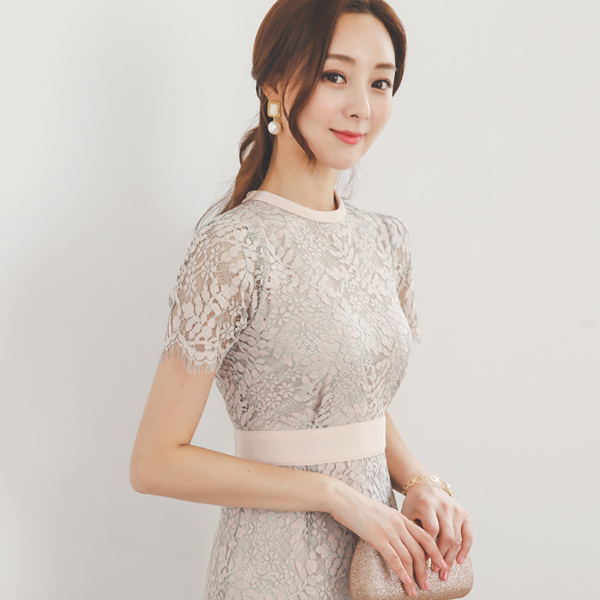 魅力的蕾丝花边束带棉连衣裙