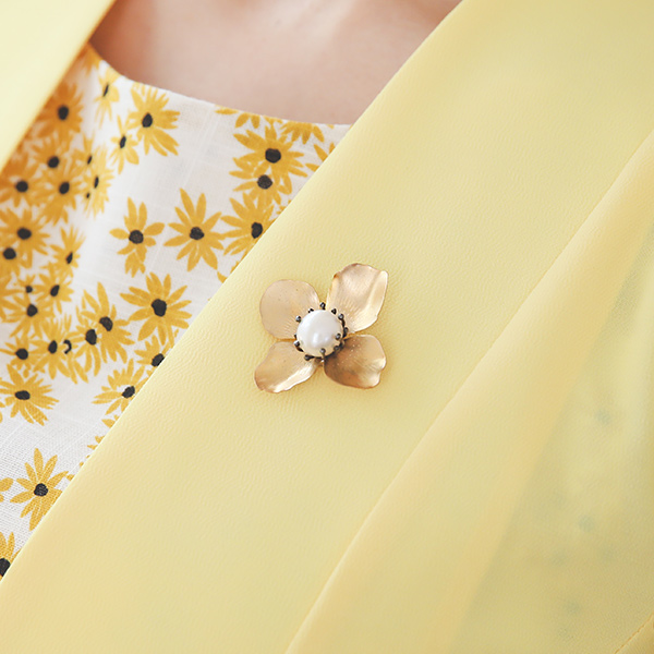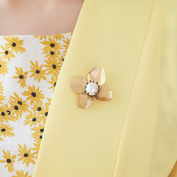 Gold 花纹 珍珠 胸针