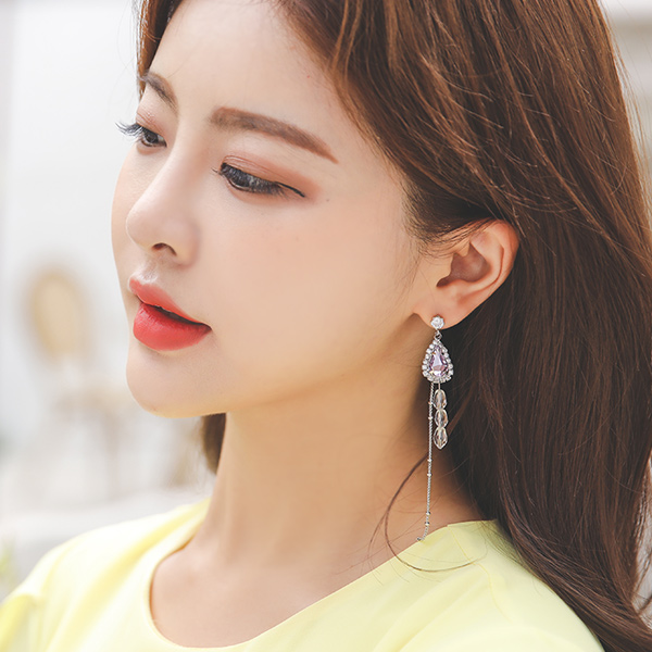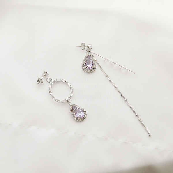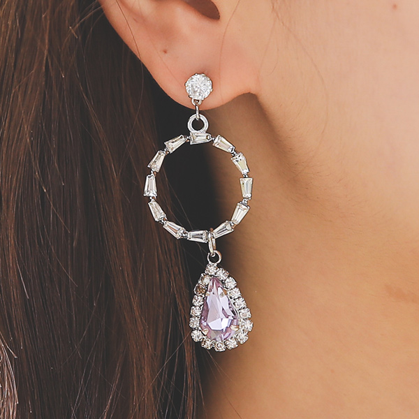 紫色镶钻不规则吊坠耳环
