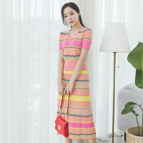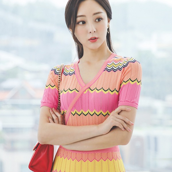 波纹图案 印花 粘胶 针织&裙子 SET