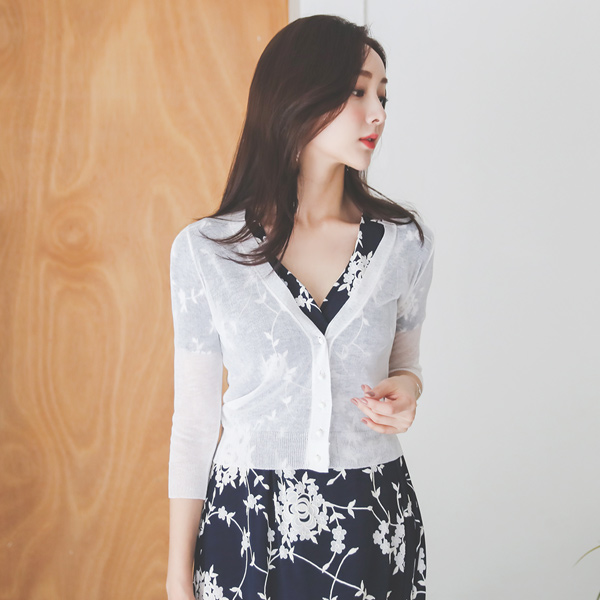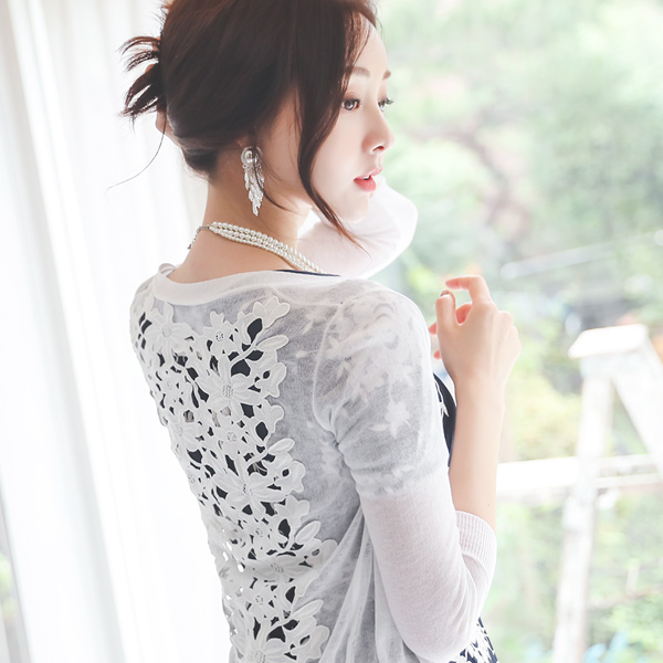 背部蕾丝 V字领 迷你 开衫