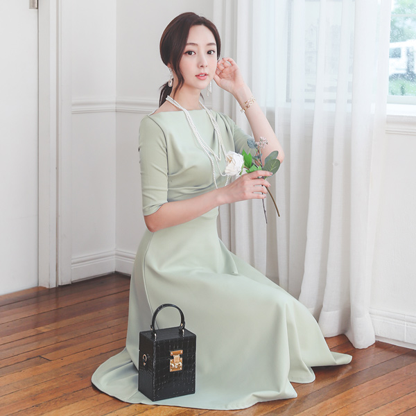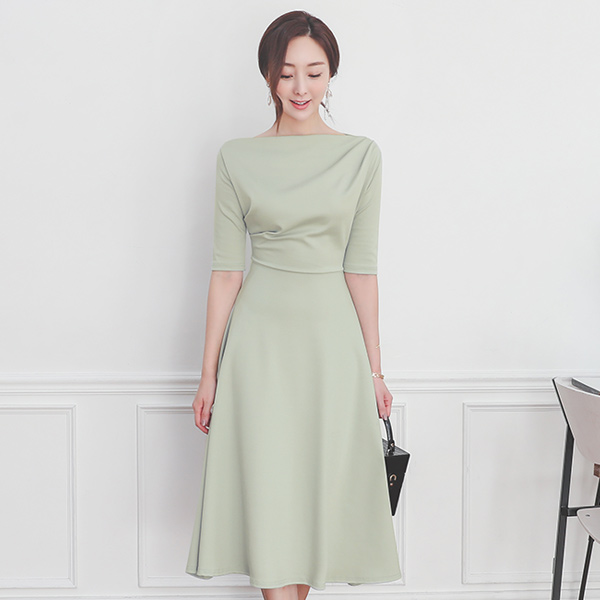 褶皱 披盖 A字型 长款 连衣裙