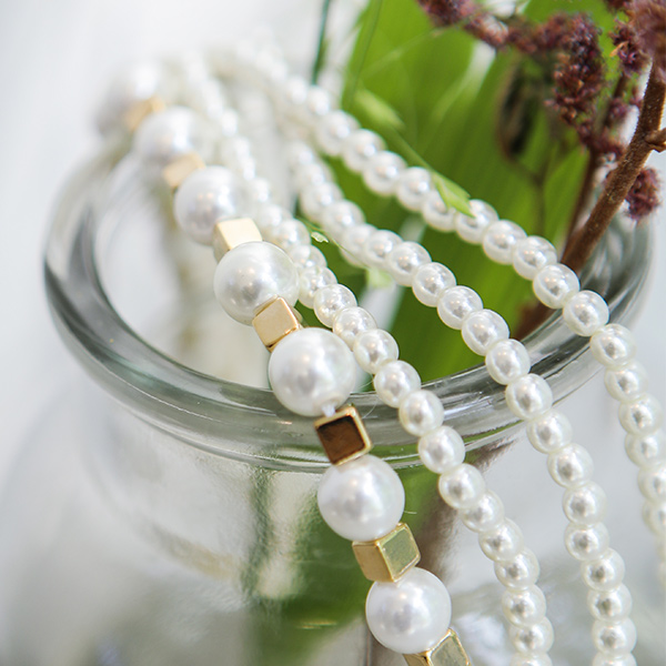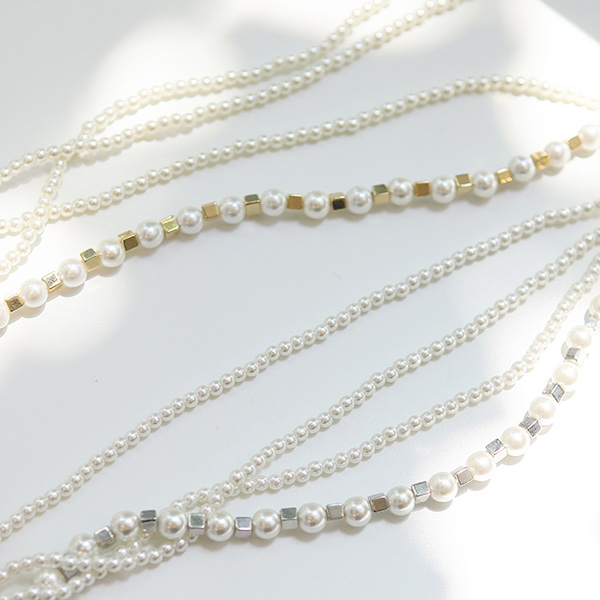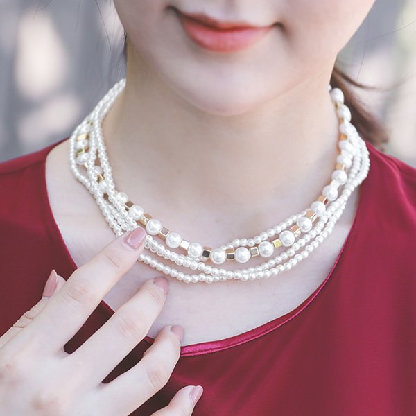 迷你四方形 珍珠 分层 项链