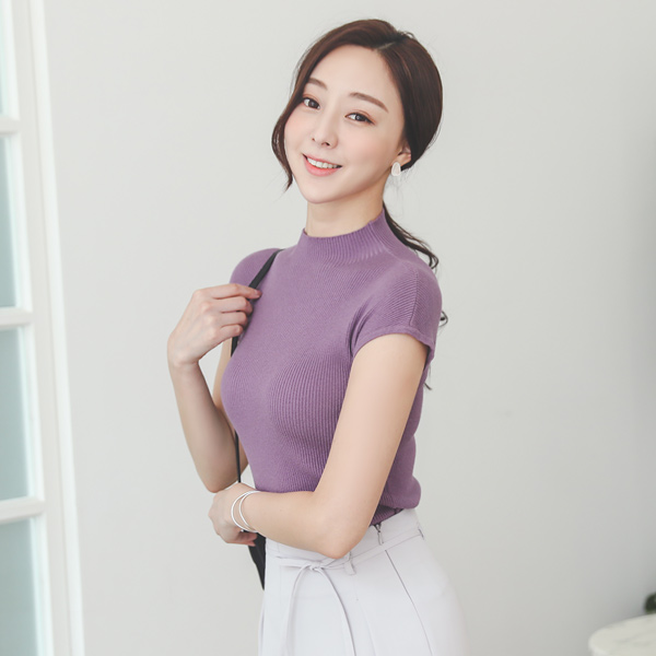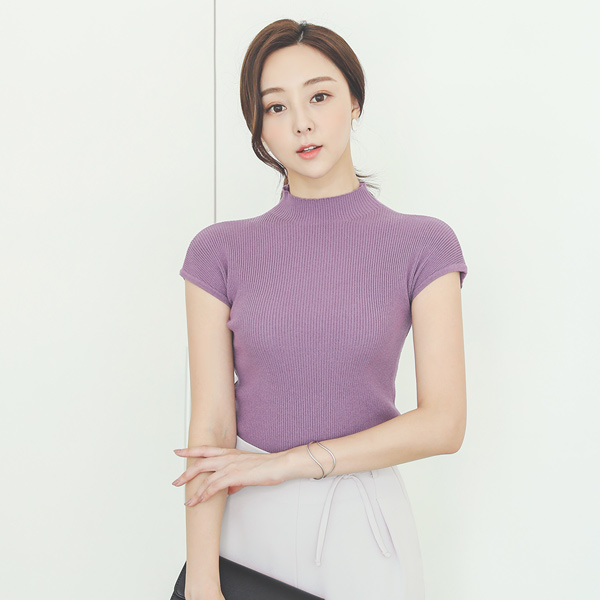 柔丝 帽檐袖 修身 半高领 针织衫
