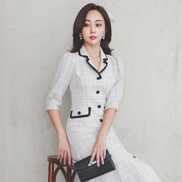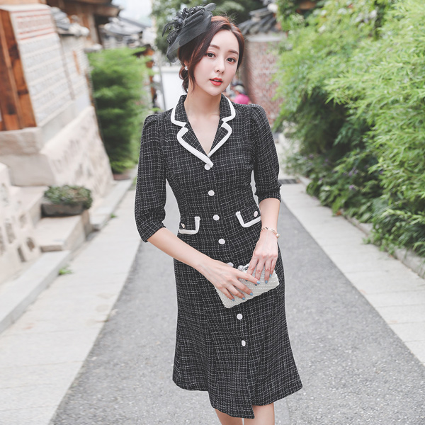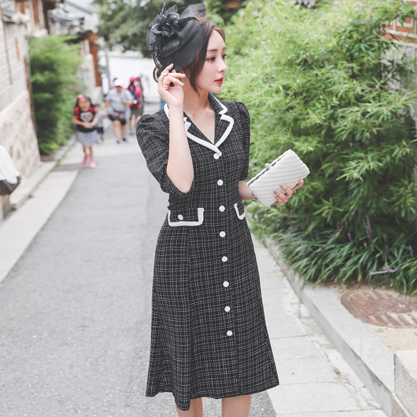 Del Luna 斜纹 粗呢 扣子 领子 连衣裙