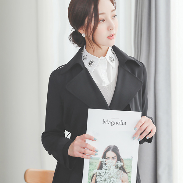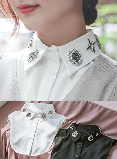镶钻 分层 领子衬衫