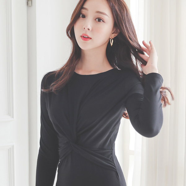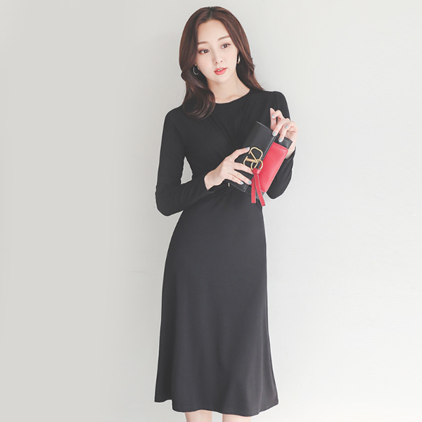 扭曲褶皱 圆领 A字型 连衣裙