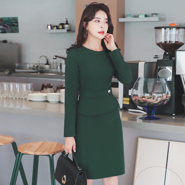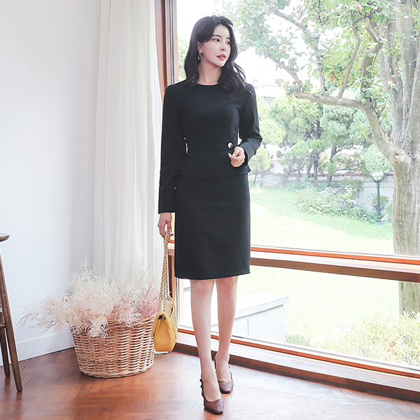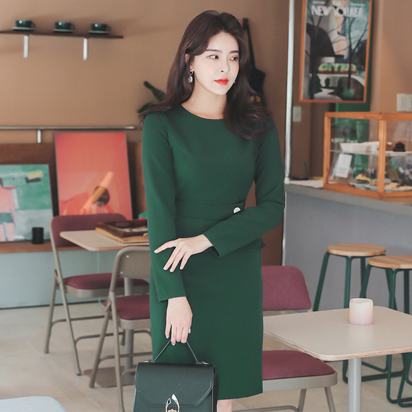 荷叶边 配色钮扣 H字型 弹力 连衣裙