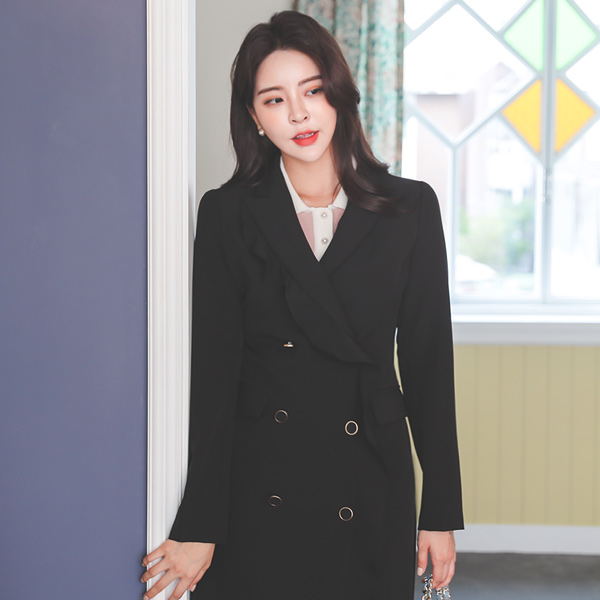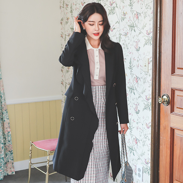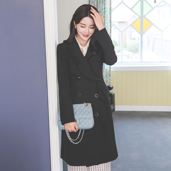 侧纽 荷叶边线条 黄金环 长款 大衣
