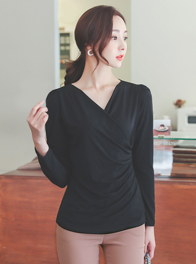 丝滑 褶皱 裹身风格 弹力 T恤衫