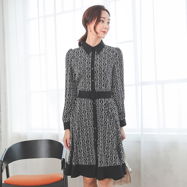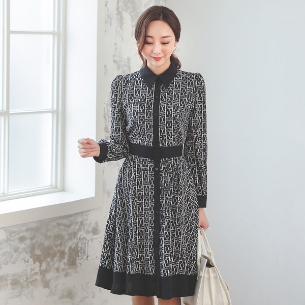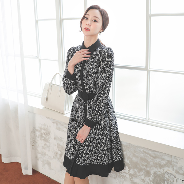 摩登 链条 图案 喇叭 连衣裙