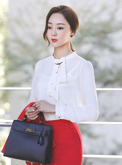 褶皱 围巾 珍珠 胸针 罩衫