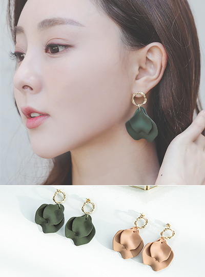 环形金色 哑光 叶子 吊坠 耳环