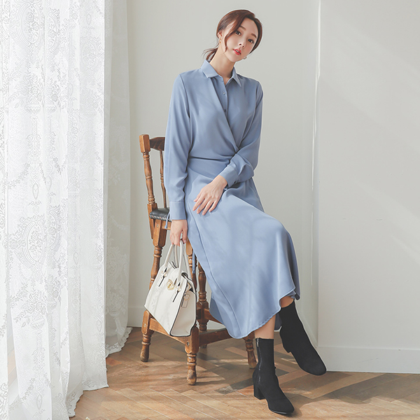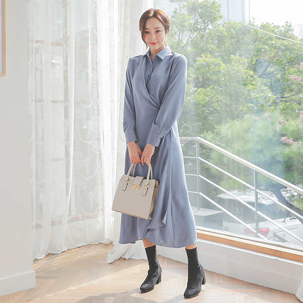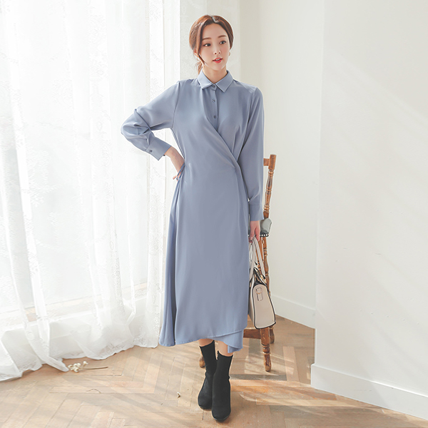 柔丝 交叉型衬衫 连衣裙