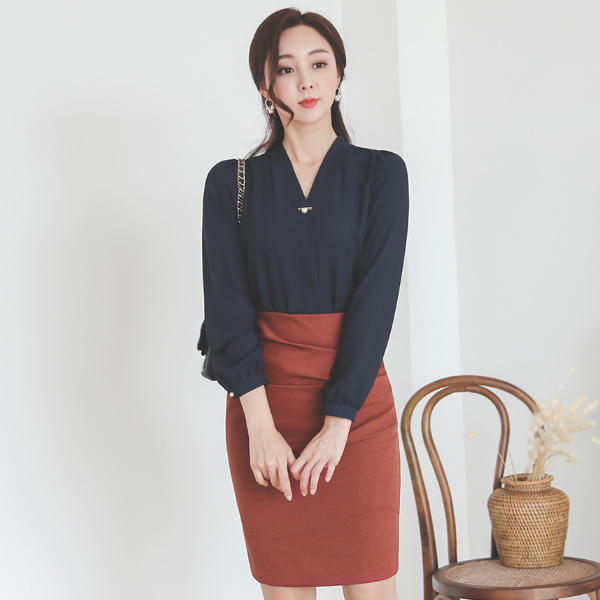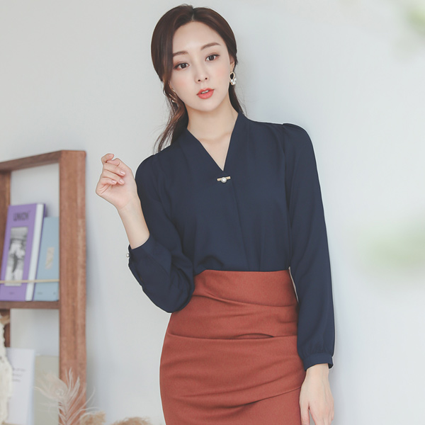 珍珠 金条装饰 V字领 罩衫 Ⅳ