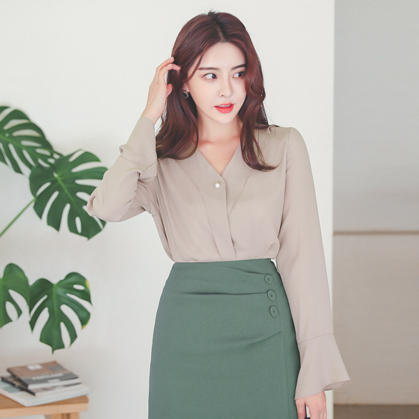 雪纺 花边 侧纽 扣子 褶皱 裙子