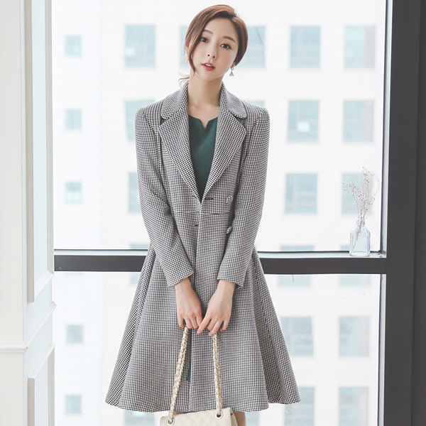 犬牙格子花纹 格子 喇叭 大衣