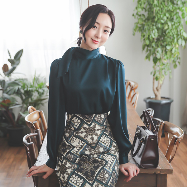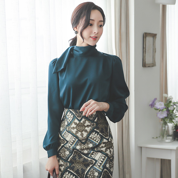 有光泽 缎子 围巾领 罩衫
