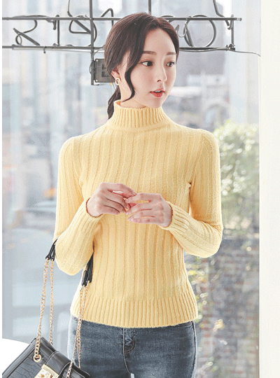 日常 粗 条绒 高领 针织衫