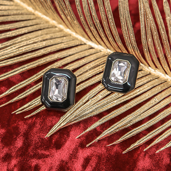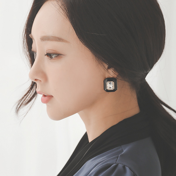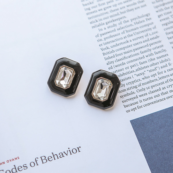 黑色圆形 镶钻 耳环