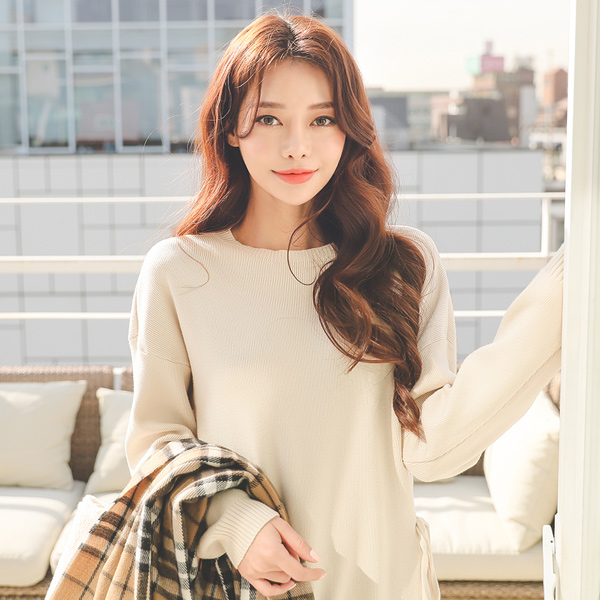 柔丝 蝴蝶结 开衩 长款针织衫&裤子 SET