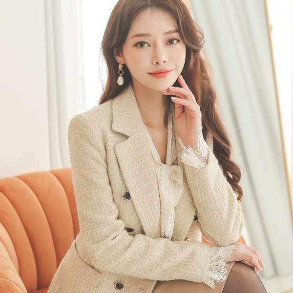 闪亮 粗呢 双 黑色扣子 长款夹克
