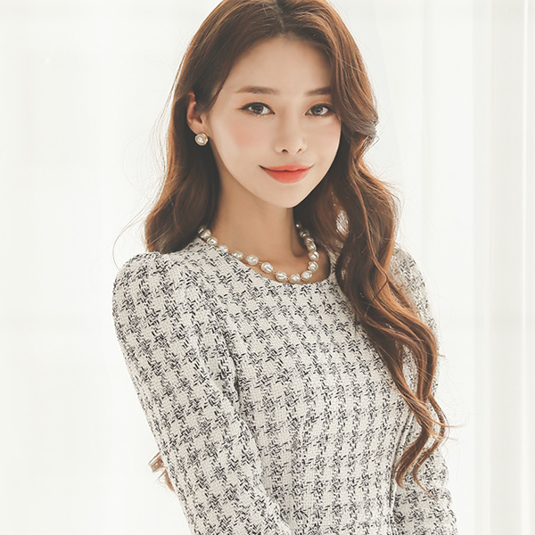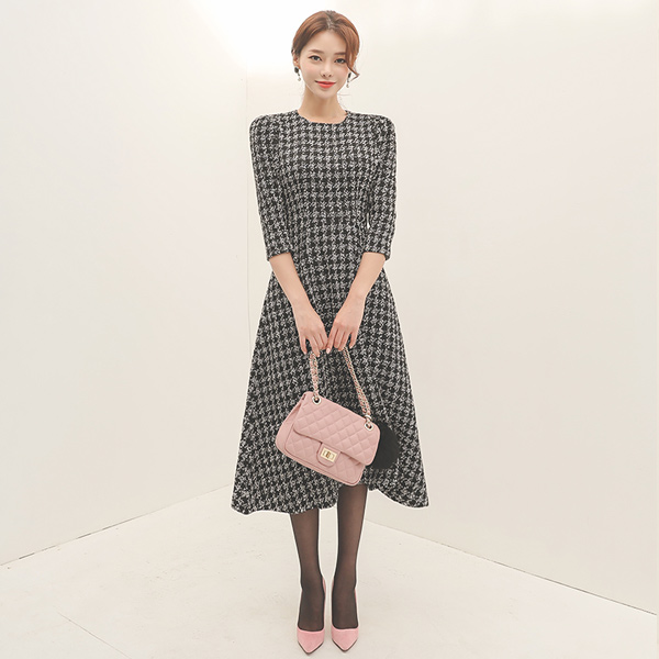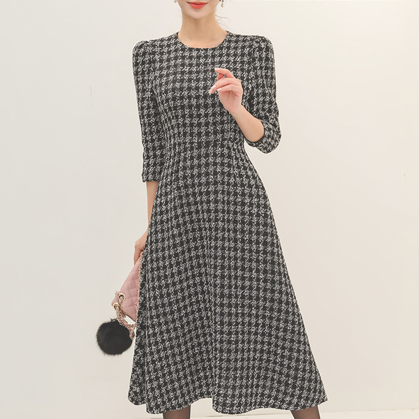 블레어 白色&黑色 粗呢 喇叭 连衣裙