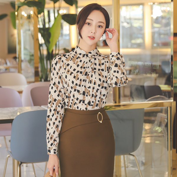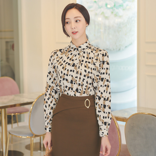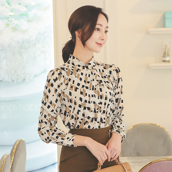 方形 珍珠 细褶 图案 罩衫