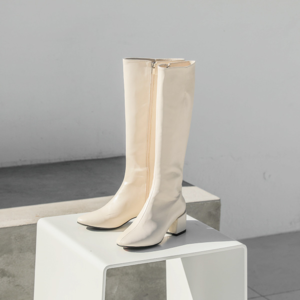 人造皮夹木跟 长款 靴子