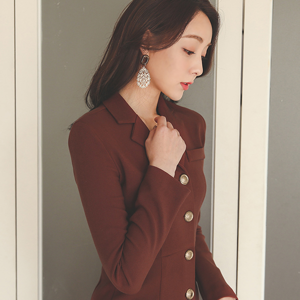 皇家 金色纽扣 美人鱼 领子 连衣裙