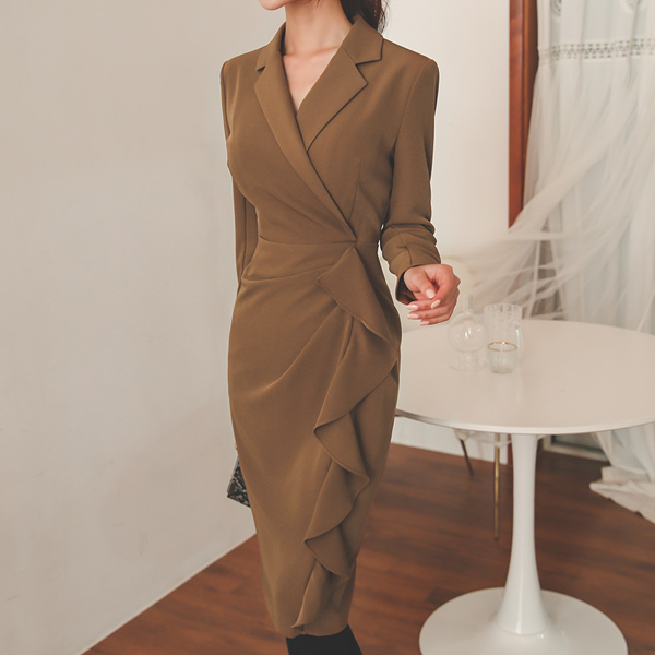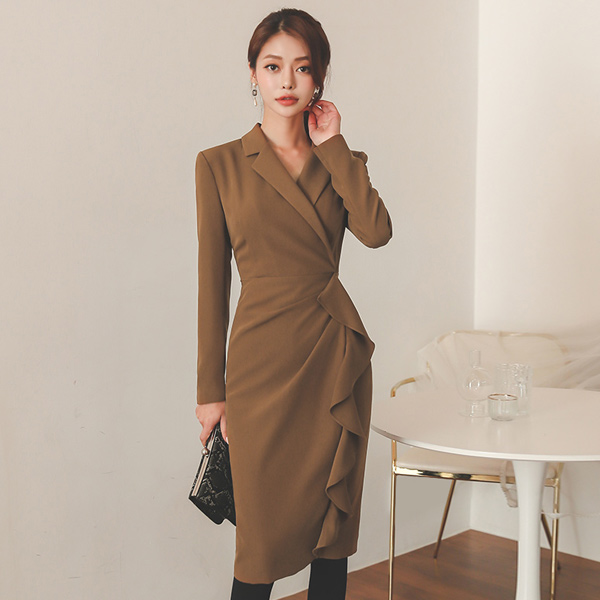 领子 裹身 不规则 荷叶边线条 摩登 连衣裙