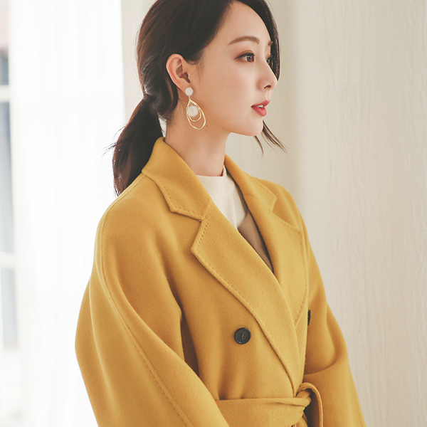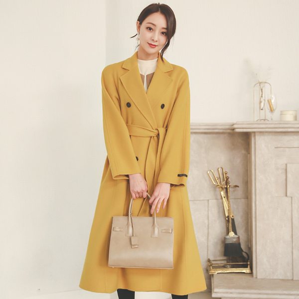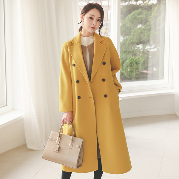 鲜明 缝线 双排扣 喇叭 羊毛大衣