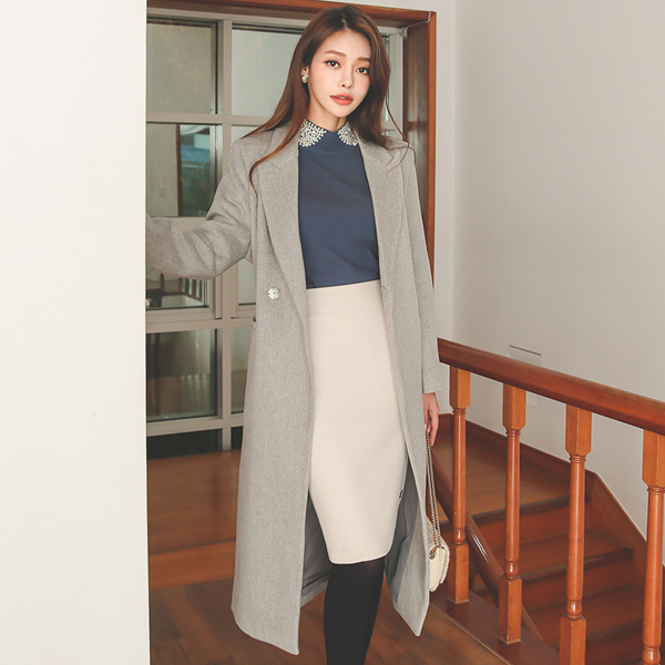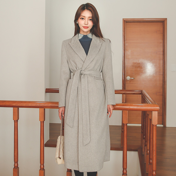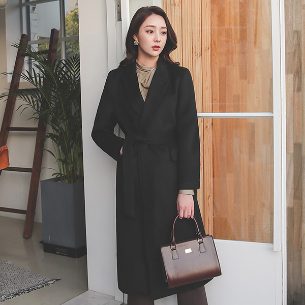 简单 基本 单扣 腰带 长款 羊毛大衣