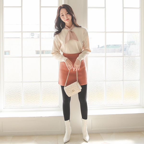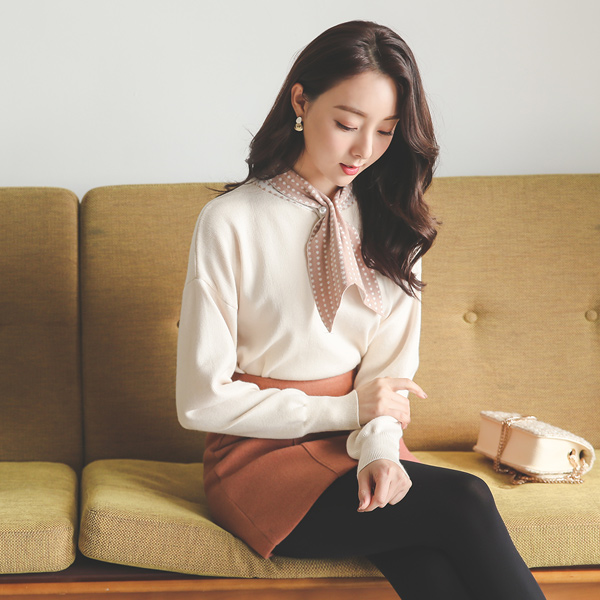 可爱 圆点 领带 珍珠胸针 针织衫