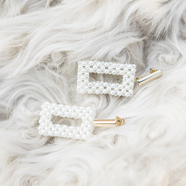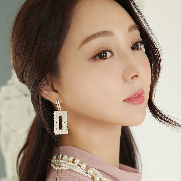 珍珠 方形 吊坠 耳环