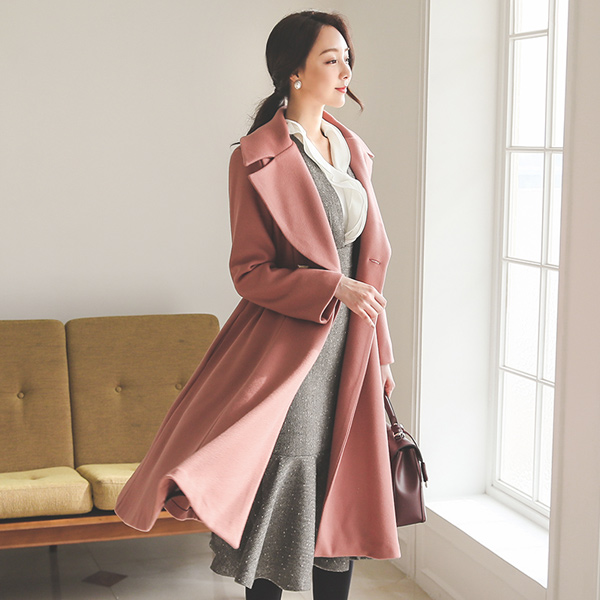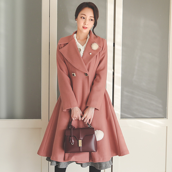 公主 珠宝钮扣 喇叭 羊毛大衣
