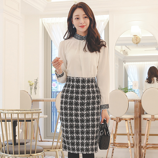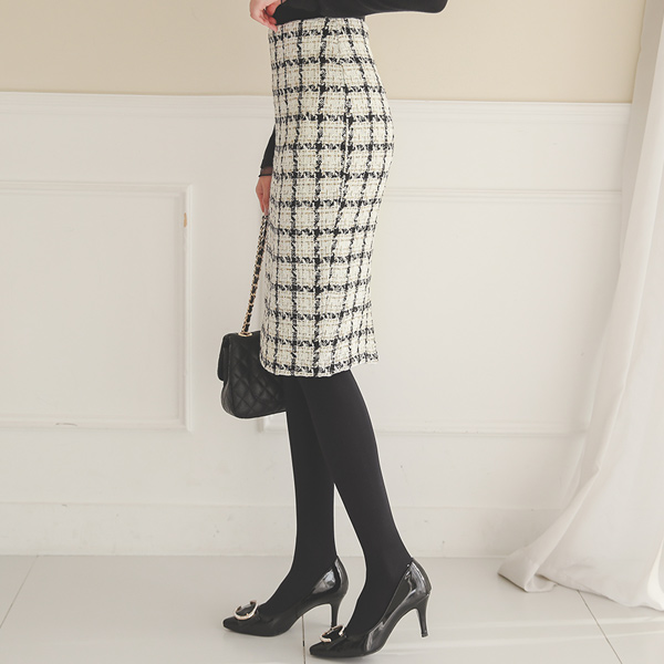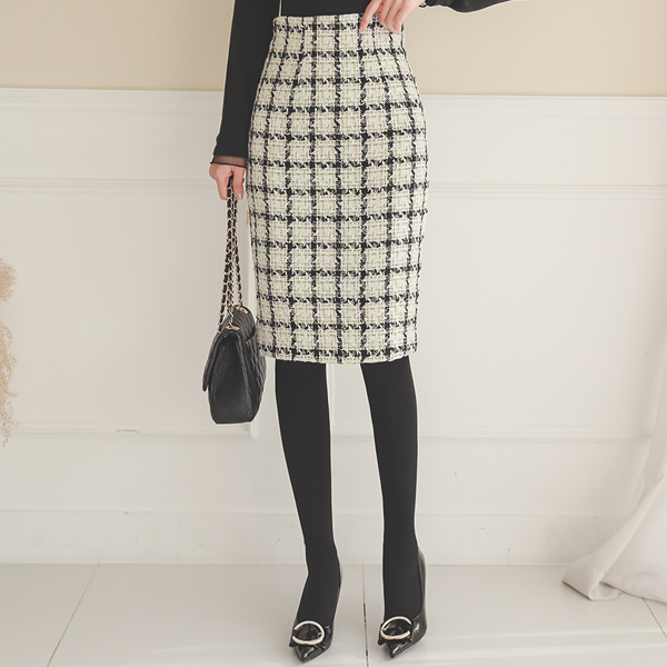 犬牙格子配色 H字型 修身 裙子