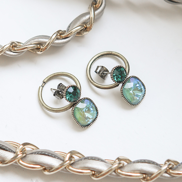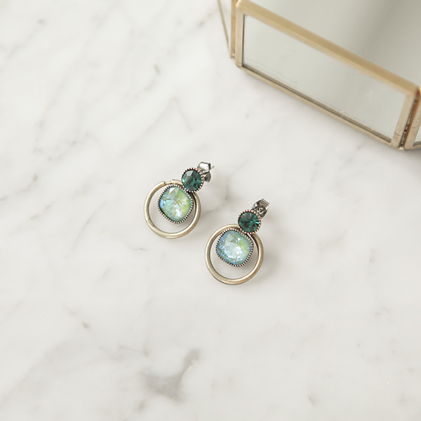 古董 黄金环 翡翠 镶钻 耳环