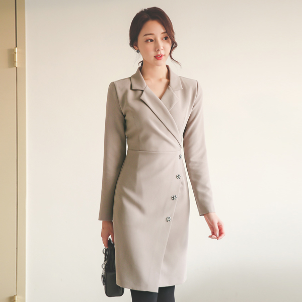 领子 裹身 镶钻 花纹 摩登 连衣裙