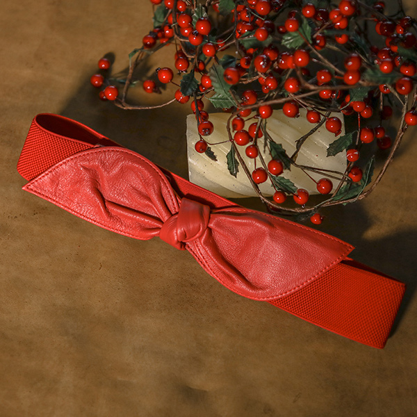 大 蝴蝶结 松紧带 皮 腰带