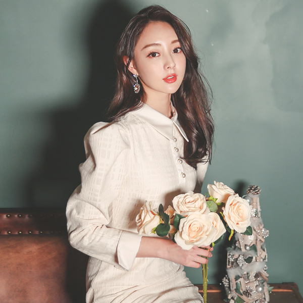 伊莎贝尔 泡泡肩 绸缎 配色 提花 连衣裙