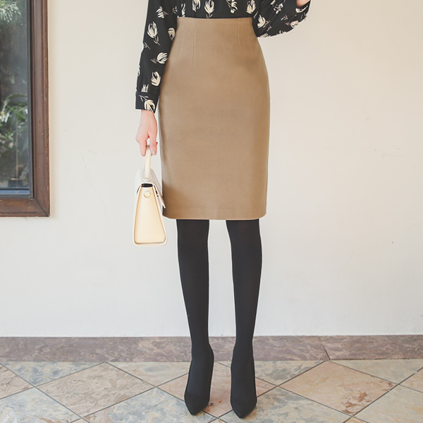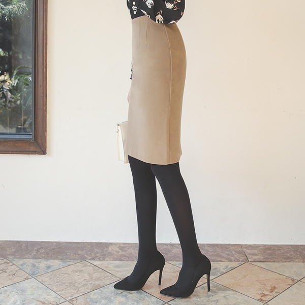 翻毛皮 触摸 Dart-Line 弹力 裙子(衬里加绒)