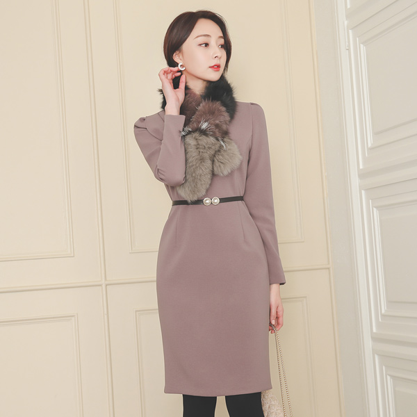 细褶 挎包 肩饰片 珍珠腰带 连衣裙