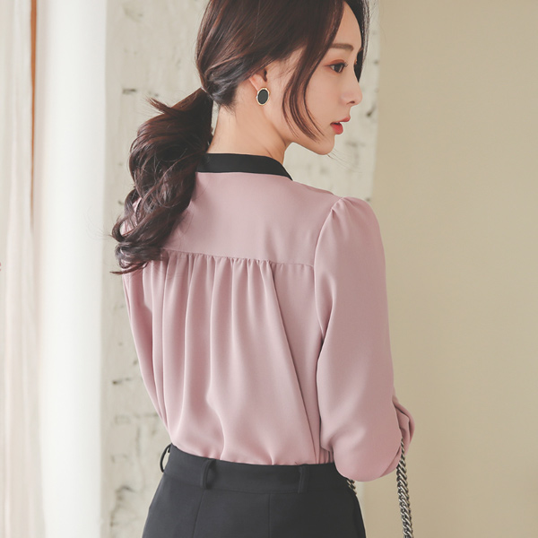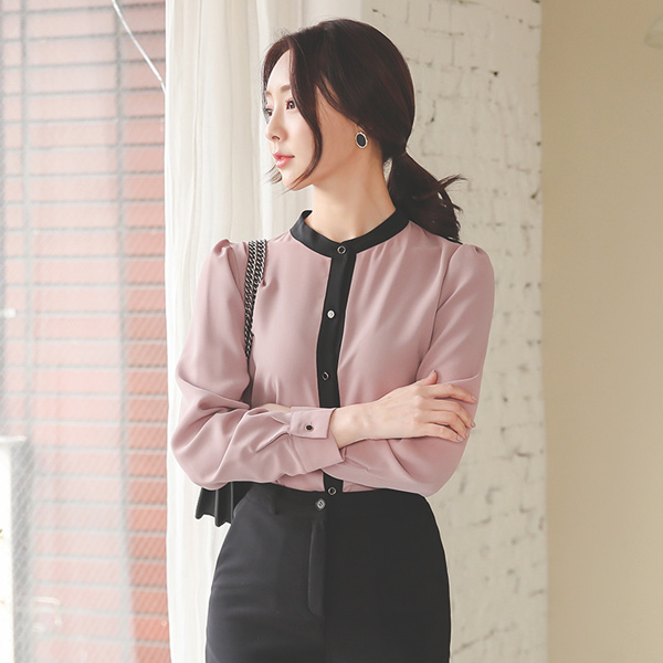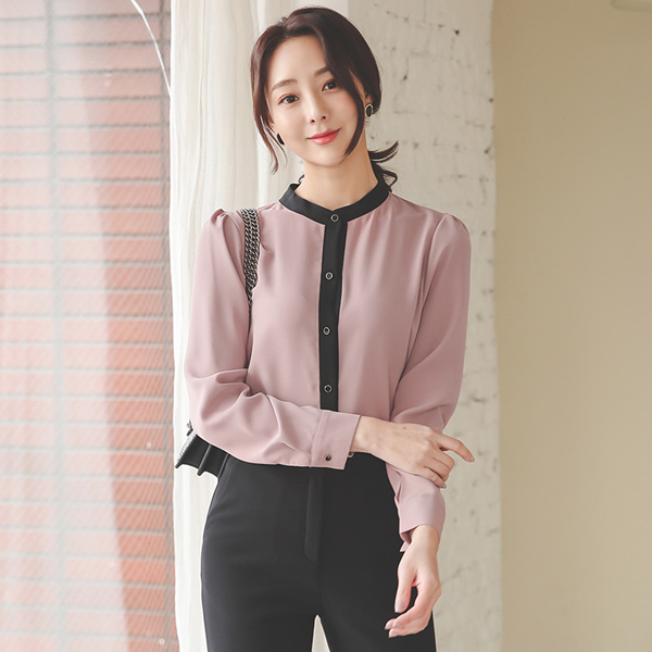 简单 配色线 金色纽扣 罩衫