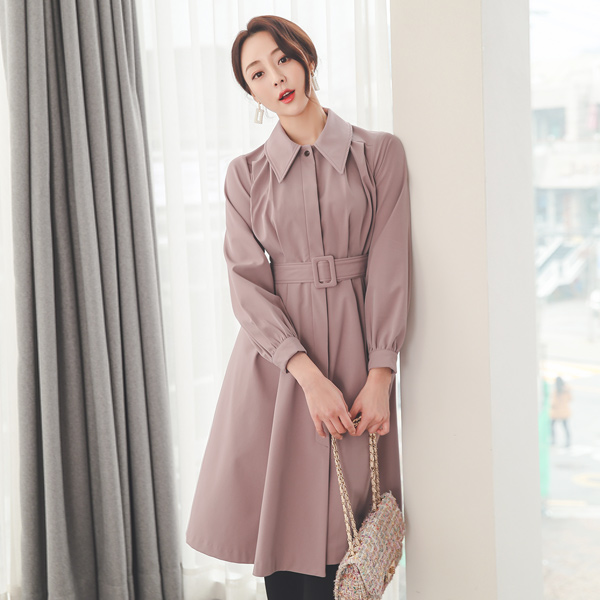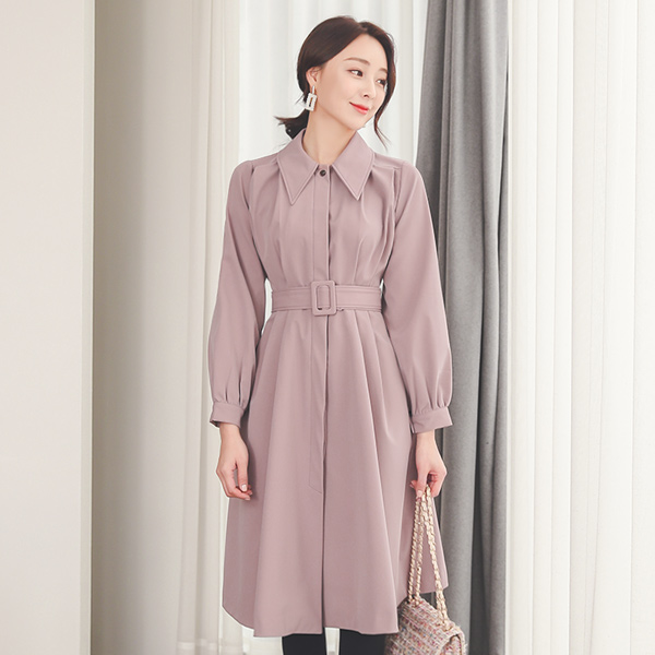 针褶单肩隐形衬衫喇叭连衣裙