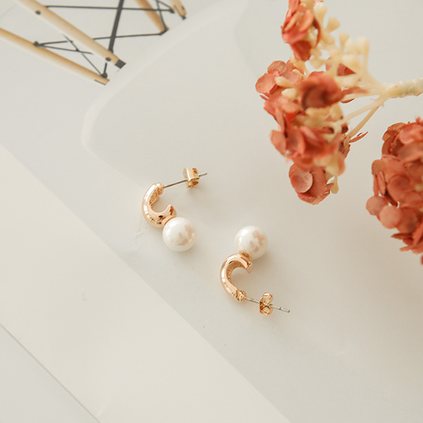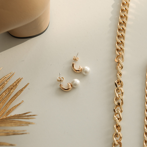 粗 迷你环 珍珠 耳环