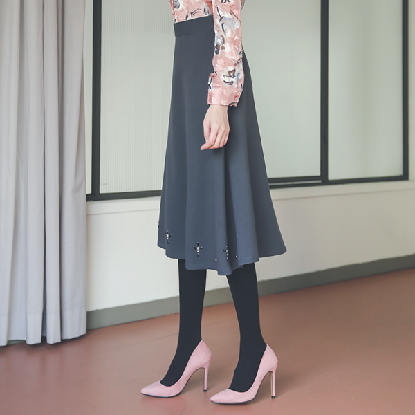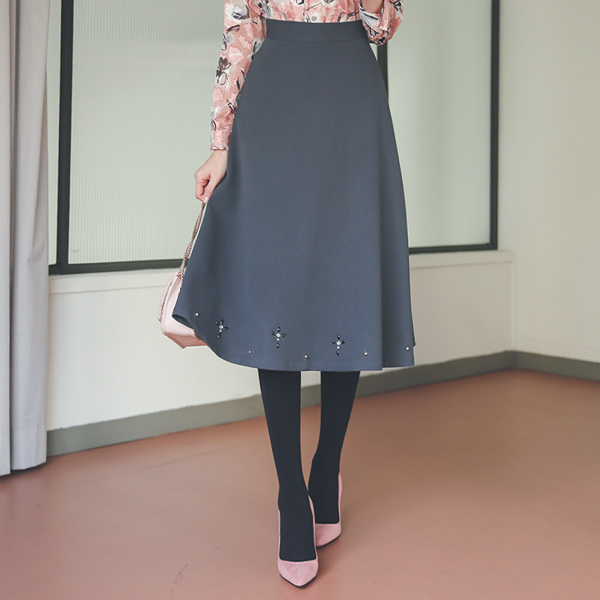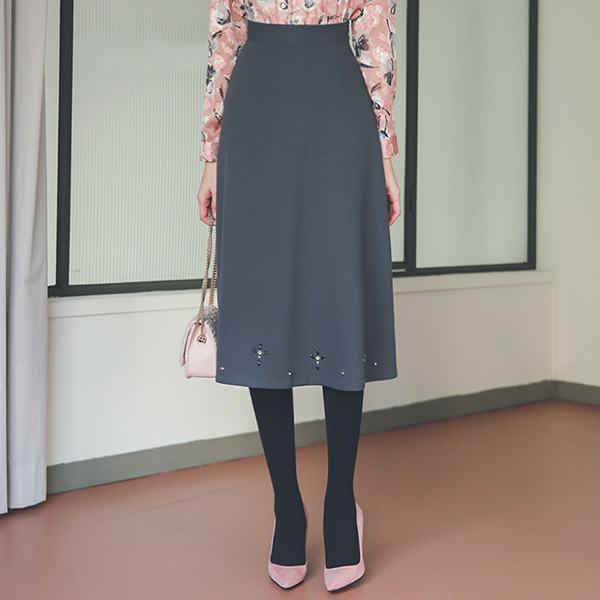 镶钻 装饰 喇叭 长款 裙子
